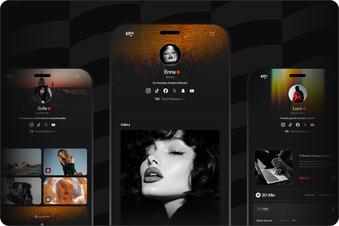Creators across the world use Oho to sell, book, grow, and get paid from one profile.