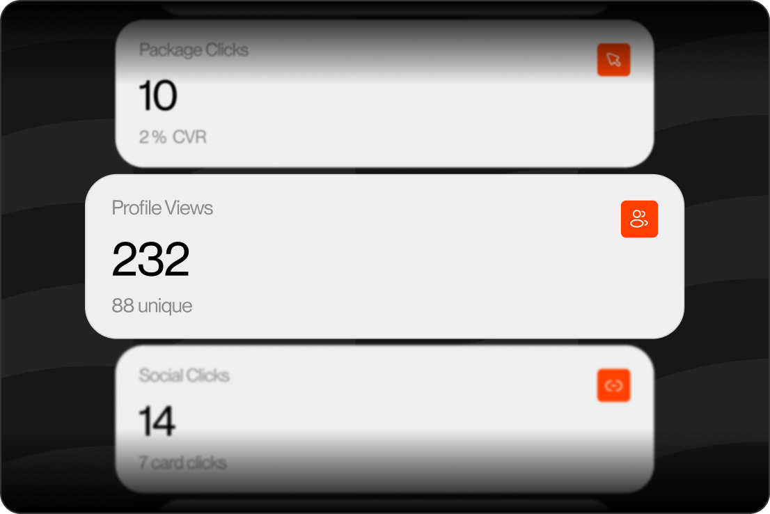 See profile views, package clicks, social clicks, newsletter subs, and brand inquiries in one dashboard built to help you understand what performs best.